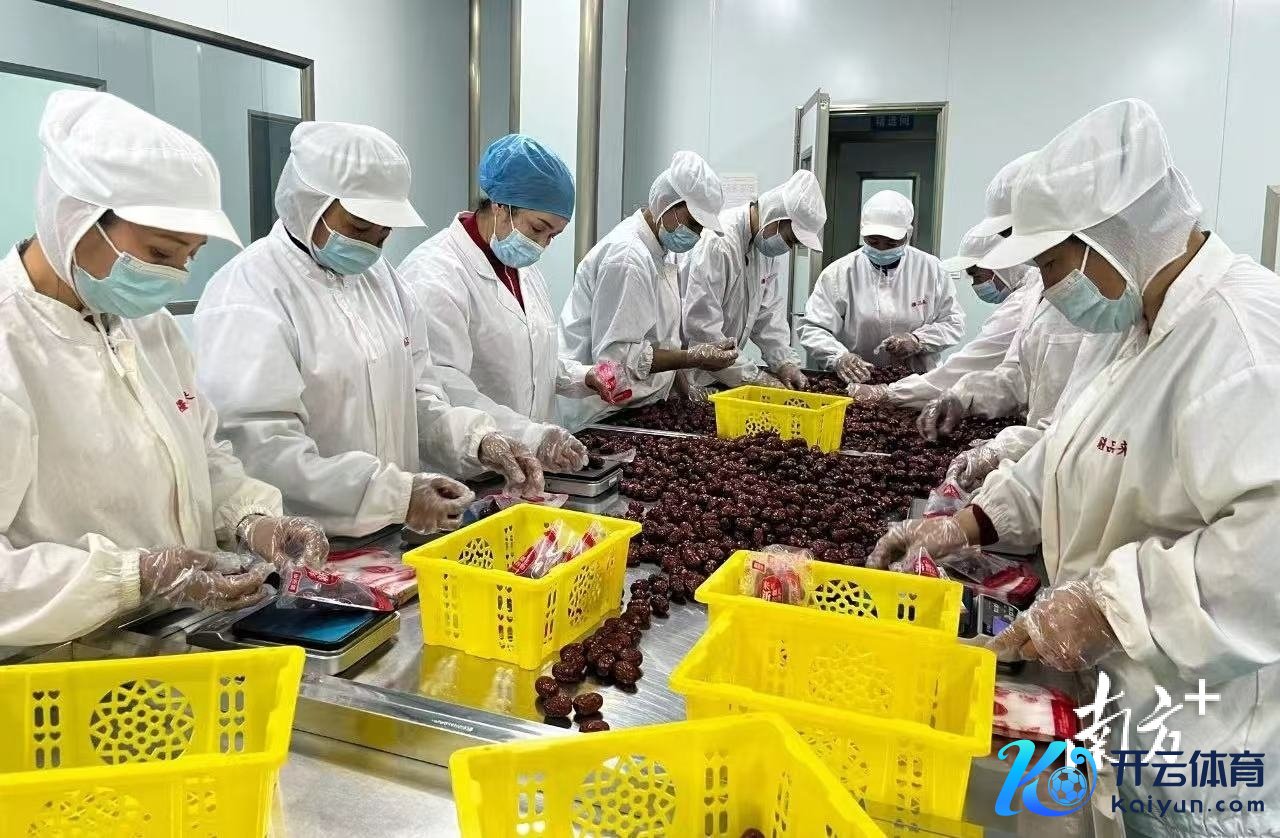 疆品来坐褥车间工东说念主们正在包装红枣。