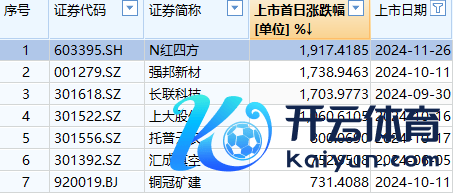 收盘价160.99元,涨幅达1917%,突出10月11日上市的强邦新材(约1739%),创下年内新的首日涨幅记载。全天成交额为30.96亿元,排在市集第36位。