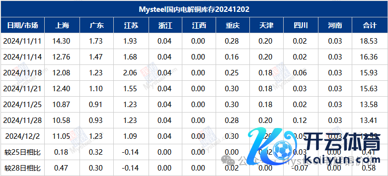 12月2日国内市集电解铜现货库13.99万吨,较25日增0.41万吨,较28日增0.58万吨;