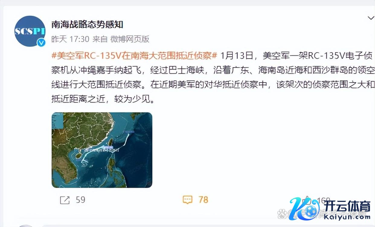 中原经纬网 ————好意思空军RC-135V在南海大限度抵近侦察kaiyun中国官方网站